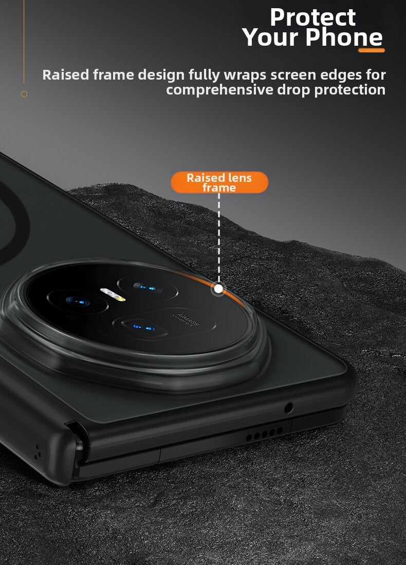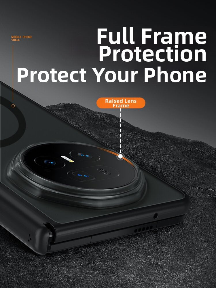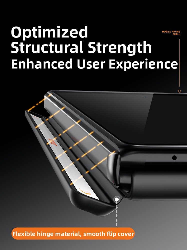 The case features a magnetic hinge design that offers enhanced protection to the phone's foldable screen, preventing scratches and damage.
