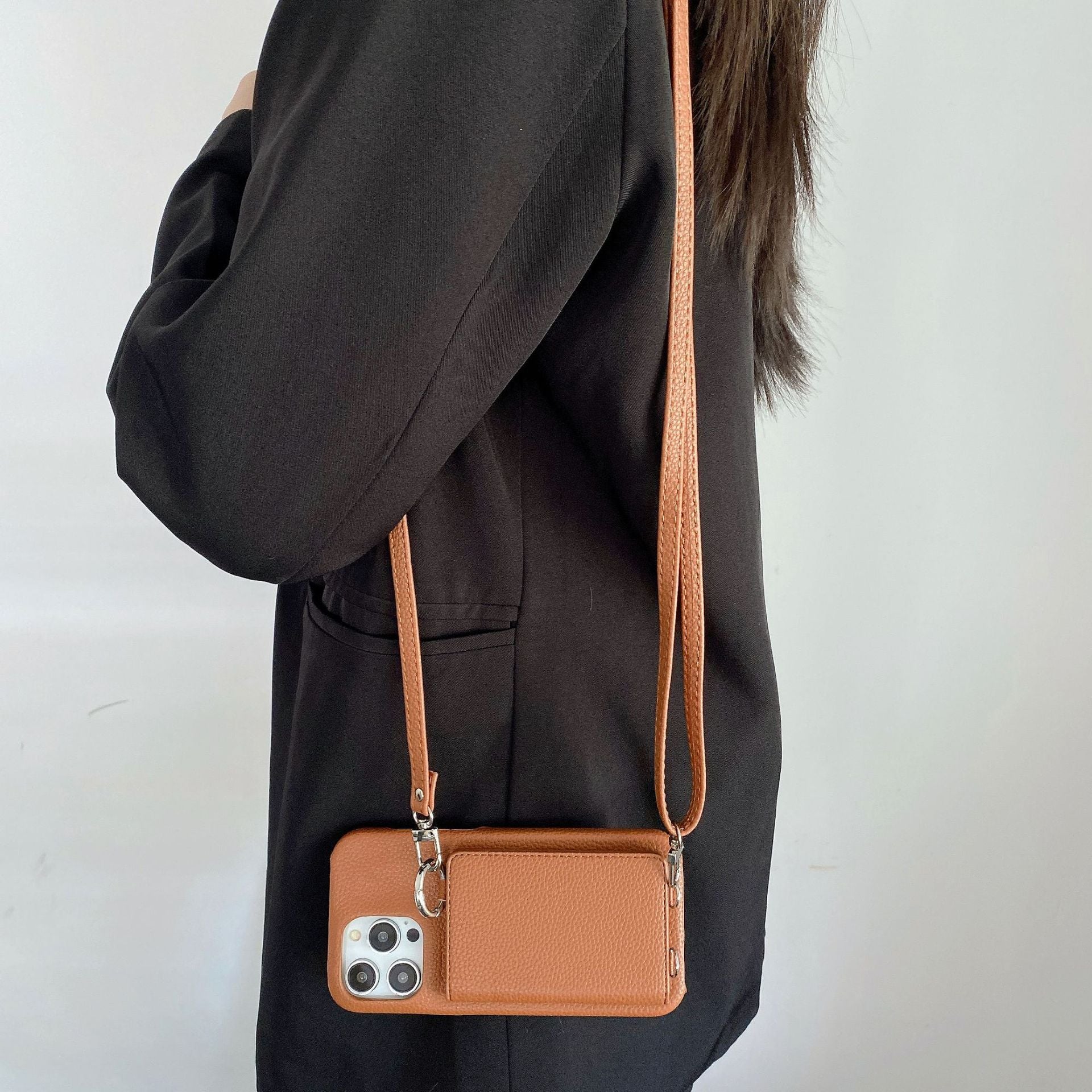Lychee Pattern Left And Right Open Beauty Mirror Lanyard Phone Case