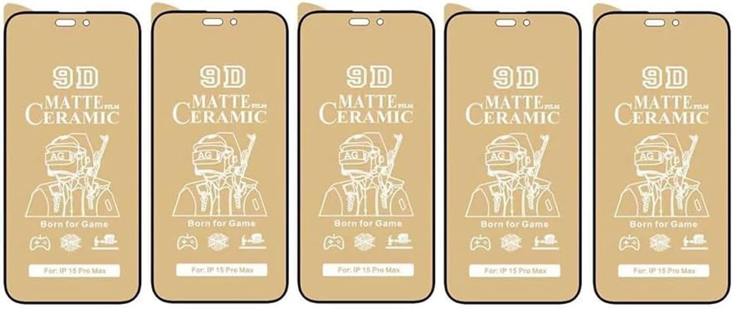 5 Pack of Ceramic Premium Matte Finish - Durable Flexible Screen Protectors for iPhone 15 Pro Max. Full screen protection from common key or knife scratching & higher level (but not absolute) impact protection. Suitable for high wear everyday use.